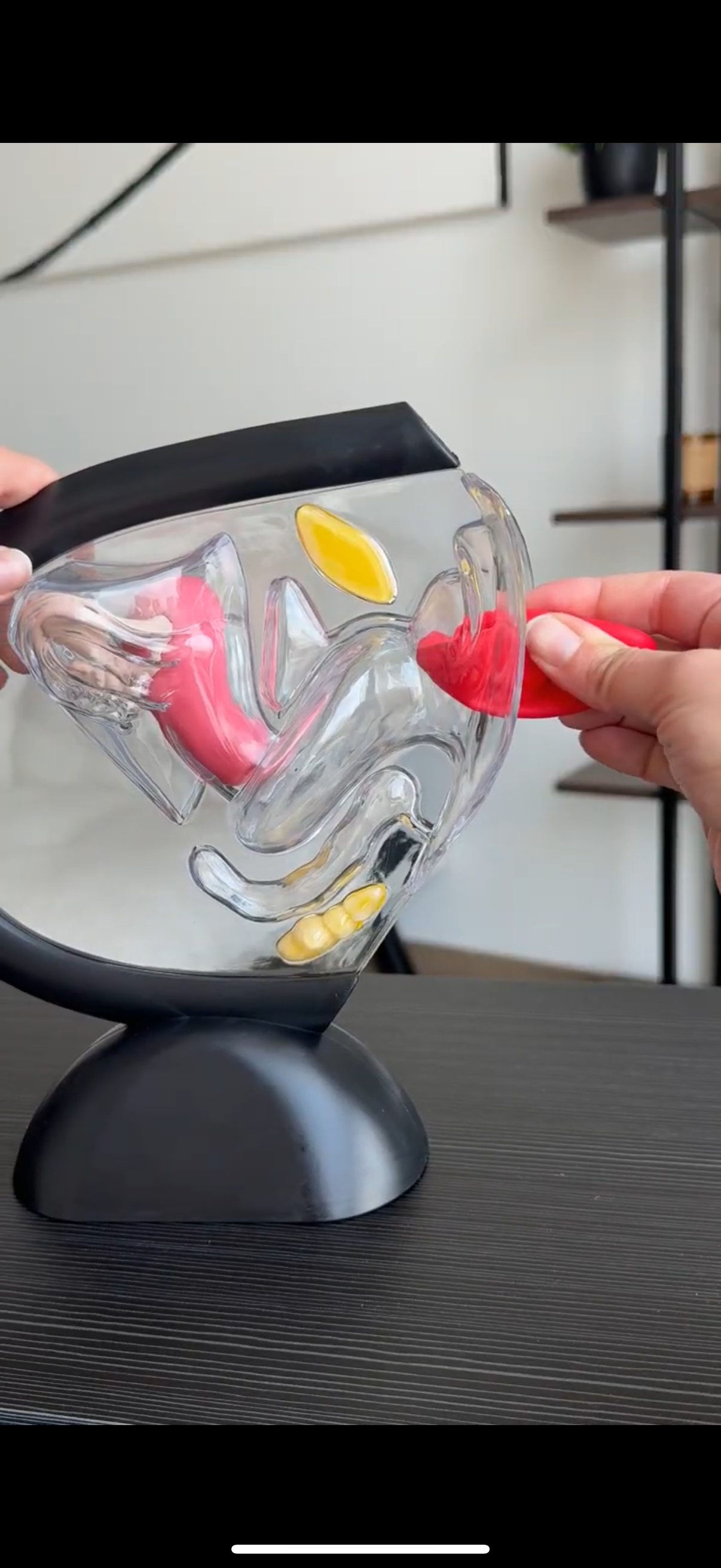 Apóyate del dedo índice, sólo necesitas un dedo. El disco se ajustará de manera inmediata.
